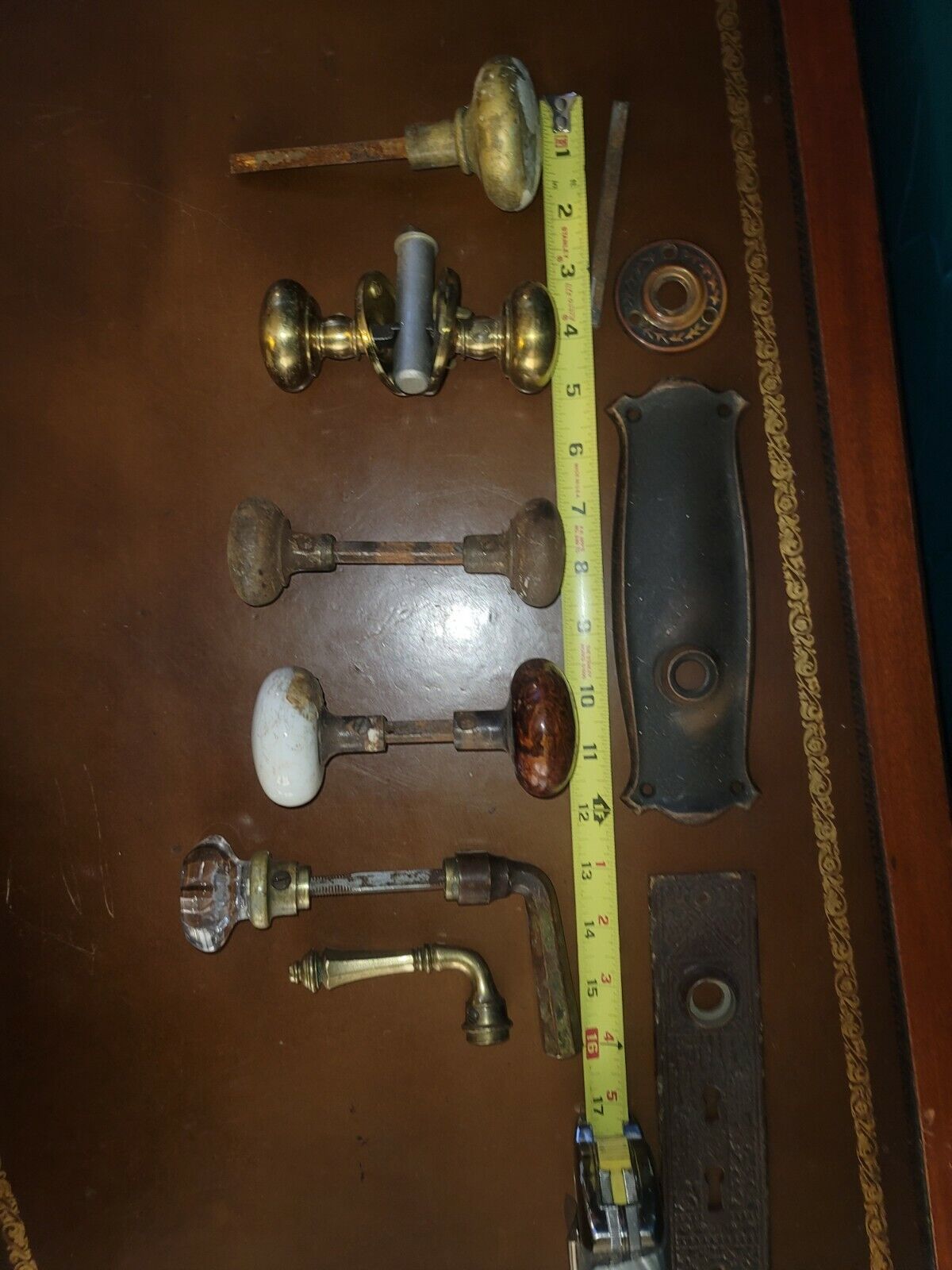 10 ANTIQUE Porcelain Brass DOOR KNOBS HANDLE HARDWARE VICTORIAN Look. What you see is exactly what you get.