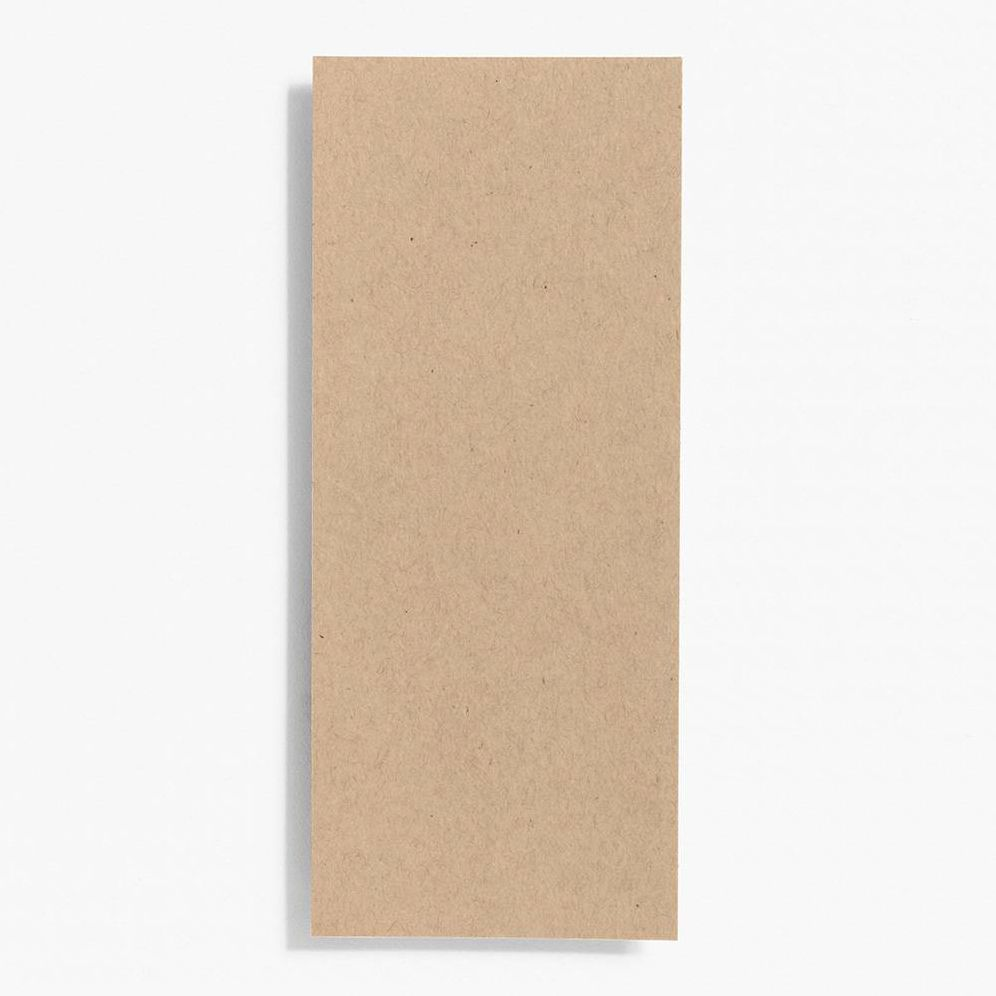 Our #10 flat card in cover weight fits in our #10 open end envelopes. This slender design is perfect for a quick note or unique invitation. Environmentally friendly, Paper Bag is made from 30% post-consumer waste and has a natural khaki color. Due to the recycled content, please note that each piece is unique and may vary slightly in color or texture.