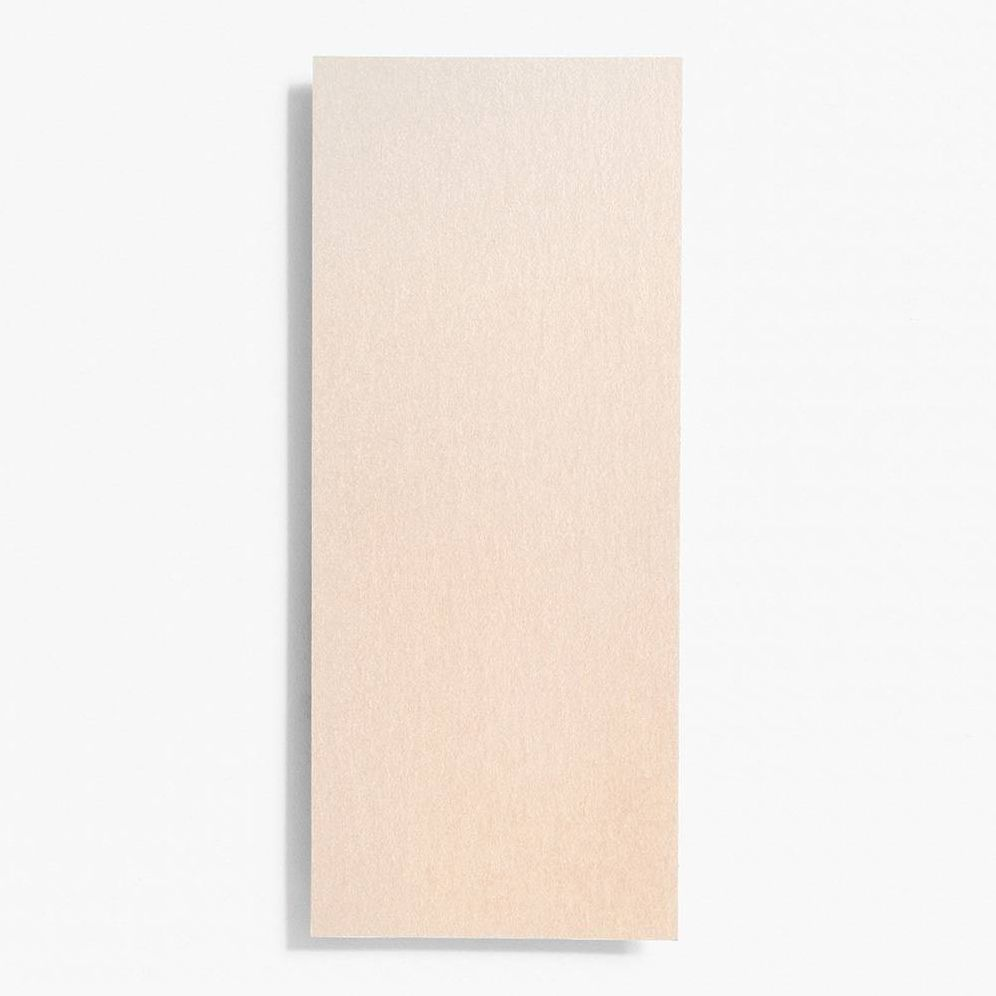Our flat card in cover weight fits in our #10 open end envelopes, this slender design is perfect for a quick note or a unique invitation. Made from our beautiful well bred Italian paper, in a pearlescent warm silvery opal. Size – 3 7/8″ X 9 1/4″ Sold in packs of 25