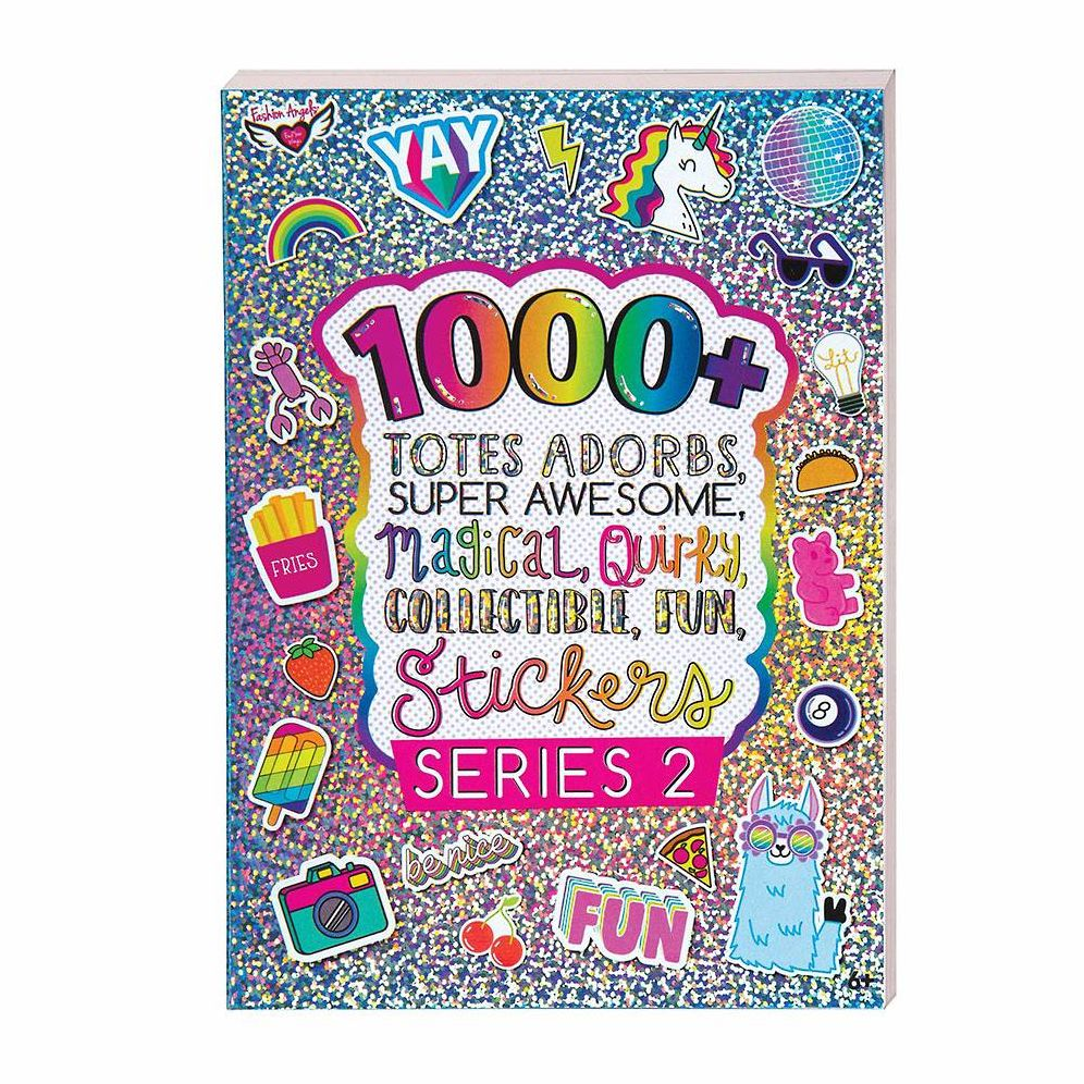This sticker book includes 1000+ high quality stickers with multiple themes. Kids and teens will enjoy cute trendy sticker designs like colorful letters, monsters, donuts, ice cream, tacos, rainbows, tropical plants, space objects, puppies, kittens, emojis, unicorns and more!