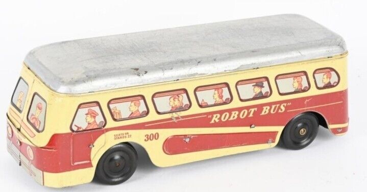 1940s-50s Kingsbury Woodhaven Tin Litho Windup Robot Bus Excellent Working