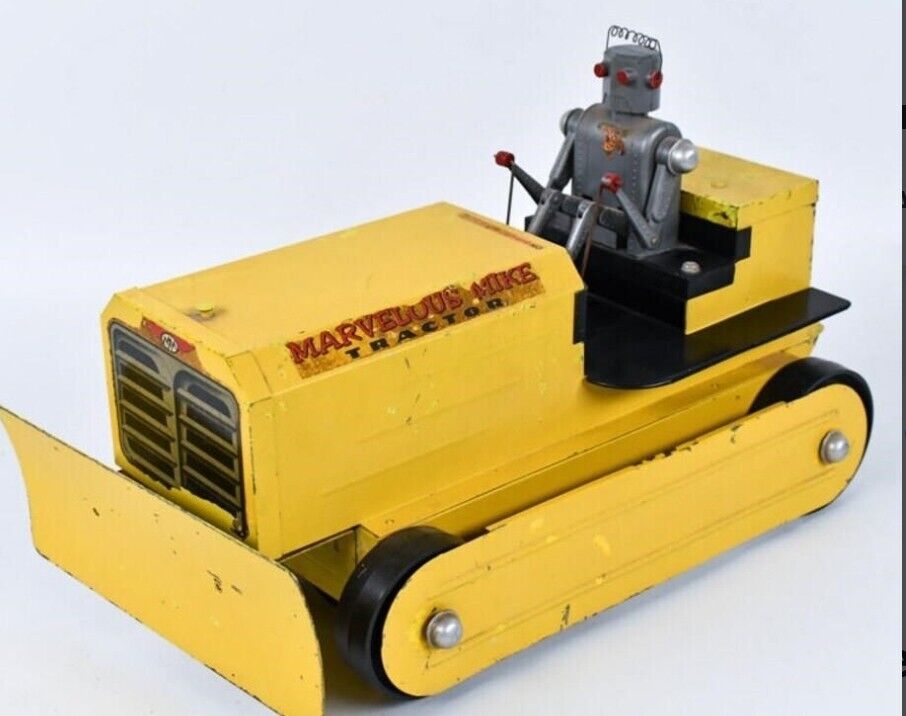 1955 SPACE ROBOT MARVELOUS MIKE TRACTOR BATTERY OPERATED TIN TOY Near MINT-16″