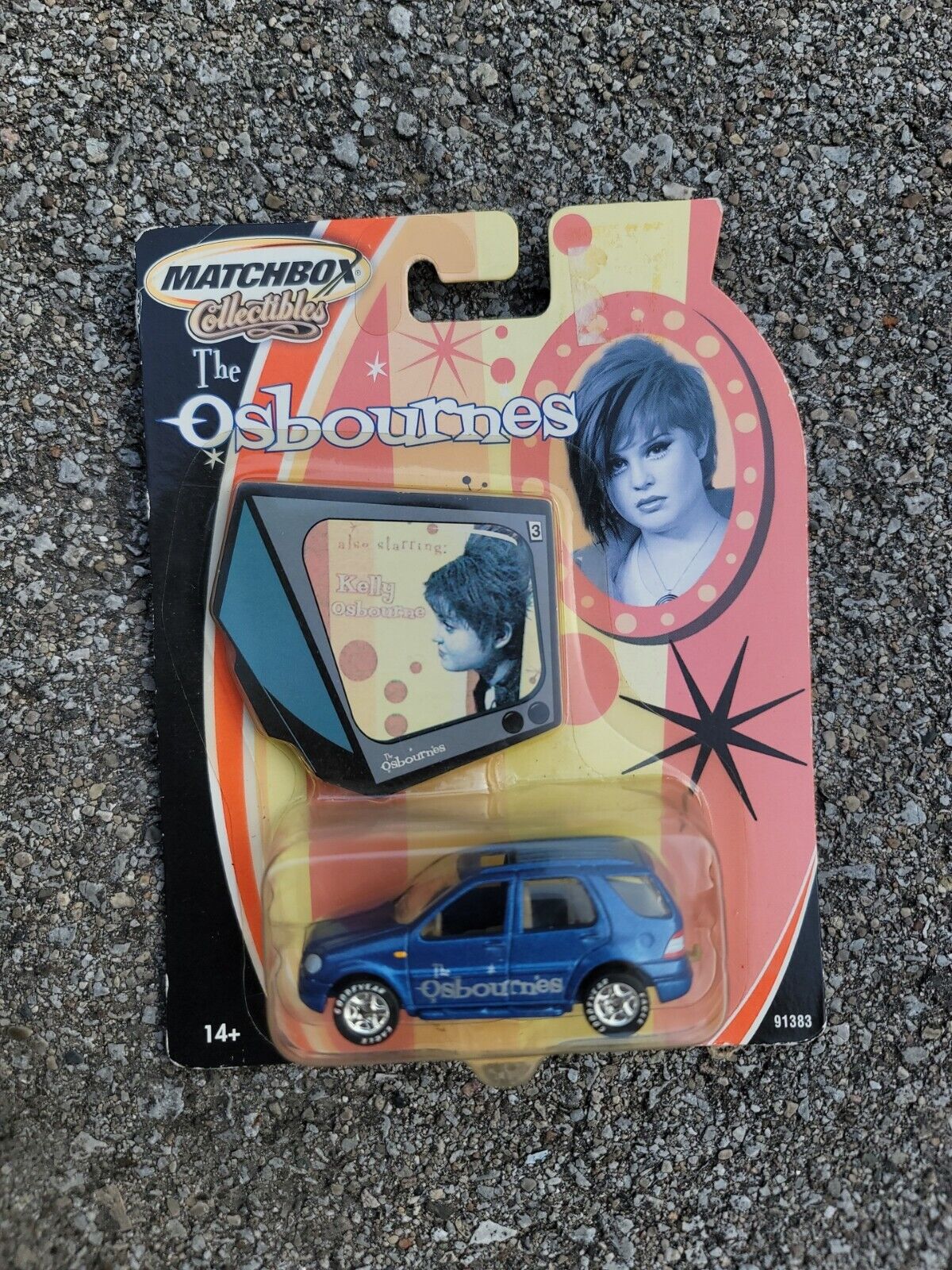This collectible Matchbox car from 2002 features Kelly Osbourne’s Mercedes Jeep, part of THE OSBOURNES series. The diecast vehicle is 1:64 scale and comes in its original box, which may have some wear and tear. The blue car with THE OSBOURNES branding is a must-have for any fan of the reality show. Made in China, this car is a rare find for collectors.