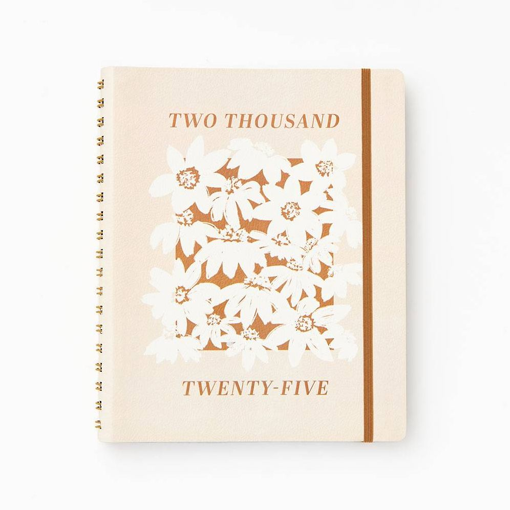 2024-2025 Paper Source Neutral Floral 17-Month Faux Leather Semi-Concealed Spiral Weekly Planner
