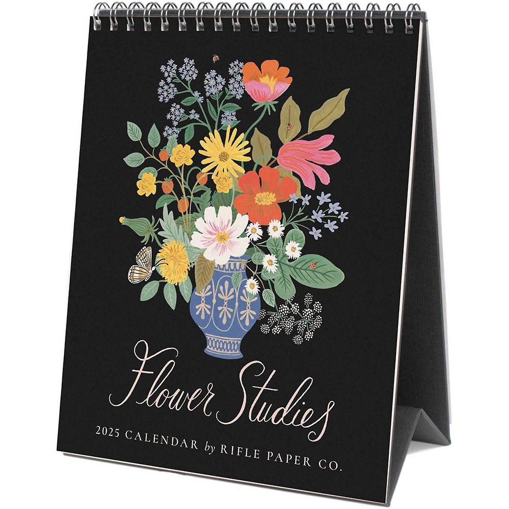 A bouquet blooms every month of the year. This Flower Studies calendar by Rifle Paper Co. includes 12 floral still life illustrations, and an attached stand makes it easy to prop up at work or home. January 2025 – December 2025. 6″ W × 7.5″ L