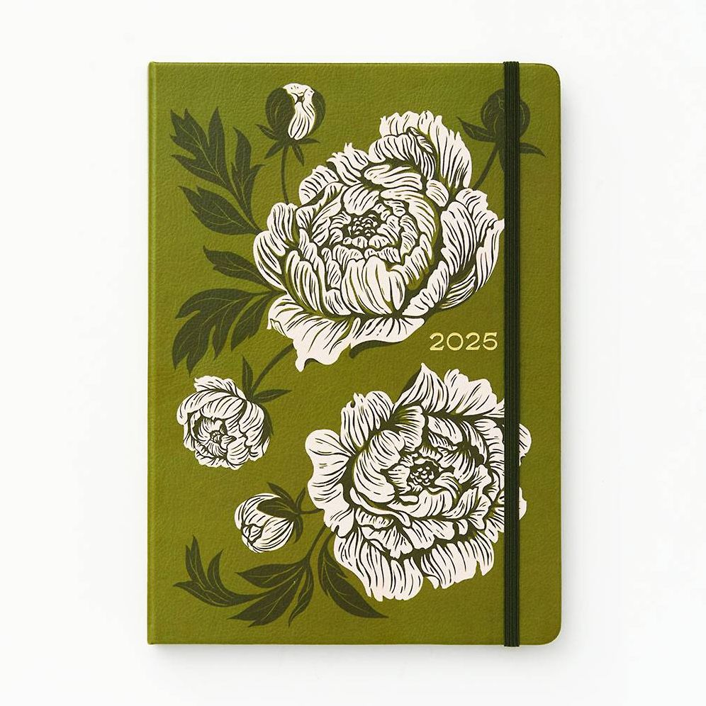 12-month dated monthly planner (Jan. 2025 Dec. 2025) with faux leather cover featuring metallic gold foil design accent, ribbon bookmarker, and elastic band closure. Includes monthly grid spreads and lined pages for notes. Plan your months and jot down important to-dos to stay organized throughout the year! 7″ w x 9.96″ h Jan. 2025 – […]