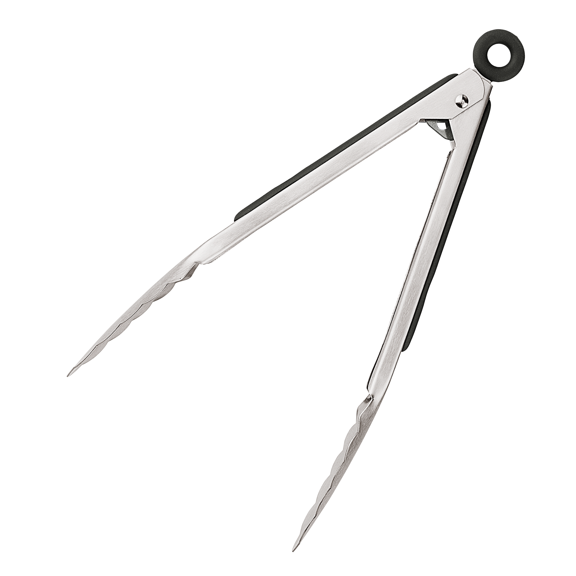 Hot foods meet your match. These sturdy 9” stainless steel tongs will have you ready for picking up, turning, and serving fresh out of the oven or hot off the grill deliciousness. Intuitive locking, comfy non-slip grip, and dishwasher safe.