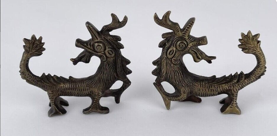 A Pair Of Old Chinese bronze “Feng shui“ kylin beast statue. These came from the Roger Mccarthy collection. Please use the pictures as part of the description and ask any questions you may have.