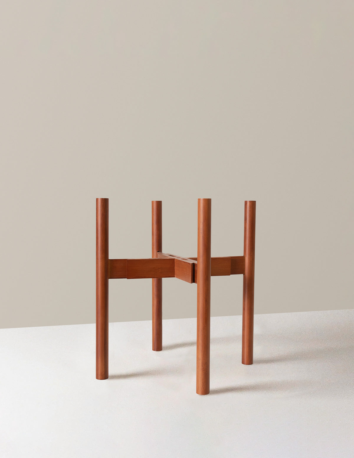 Elevate your favorite houseplants with our adjustable plant stand. Stylish, mid-century modern design made from sustainable bamboo and hand-finished. This sturdy, adjustable stand can be used on either side, giving you two different heights to choose from, and it can adjust in diameter from 8 to 12 inches to fit medium and large planters up to 10 inches wide.