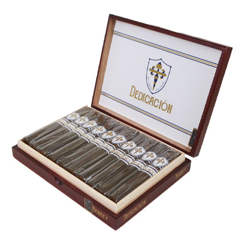 The next release from All Saints Cigars following the widely successful Solemente debut is the Dedicacion. Crafted at Tavicusa in Nicaragua, this cigar showcases a flawless San Andres wrapper enveloping a Nicaraguan binder and fillers. The Berkey, Commandant, and Coach are box-pressed with a perfect draw, while the Huge comes in a traditional round shape. This medium-bodied cigar delights with rich flavors of cedar, toasted notes, coffee, and cream.