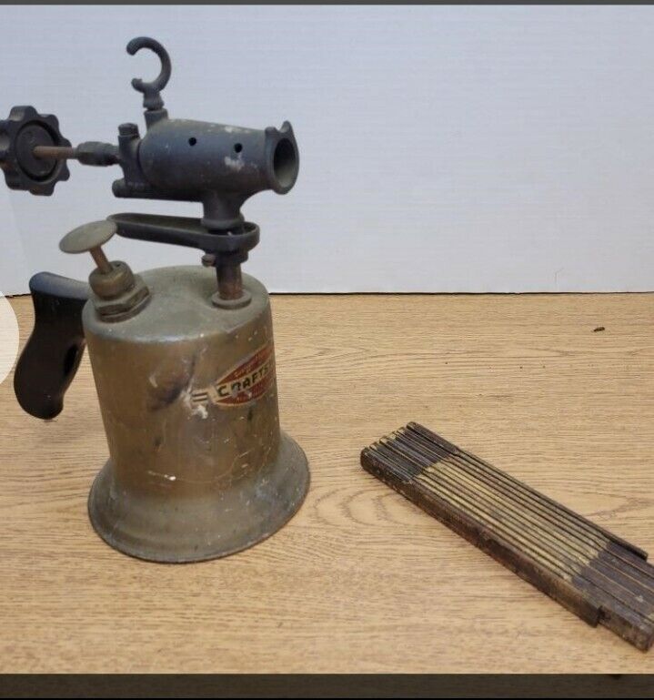 Antique Craftsman Brass Copper Blow Torch Wooden Handle. What you see is exactly what you will receive.