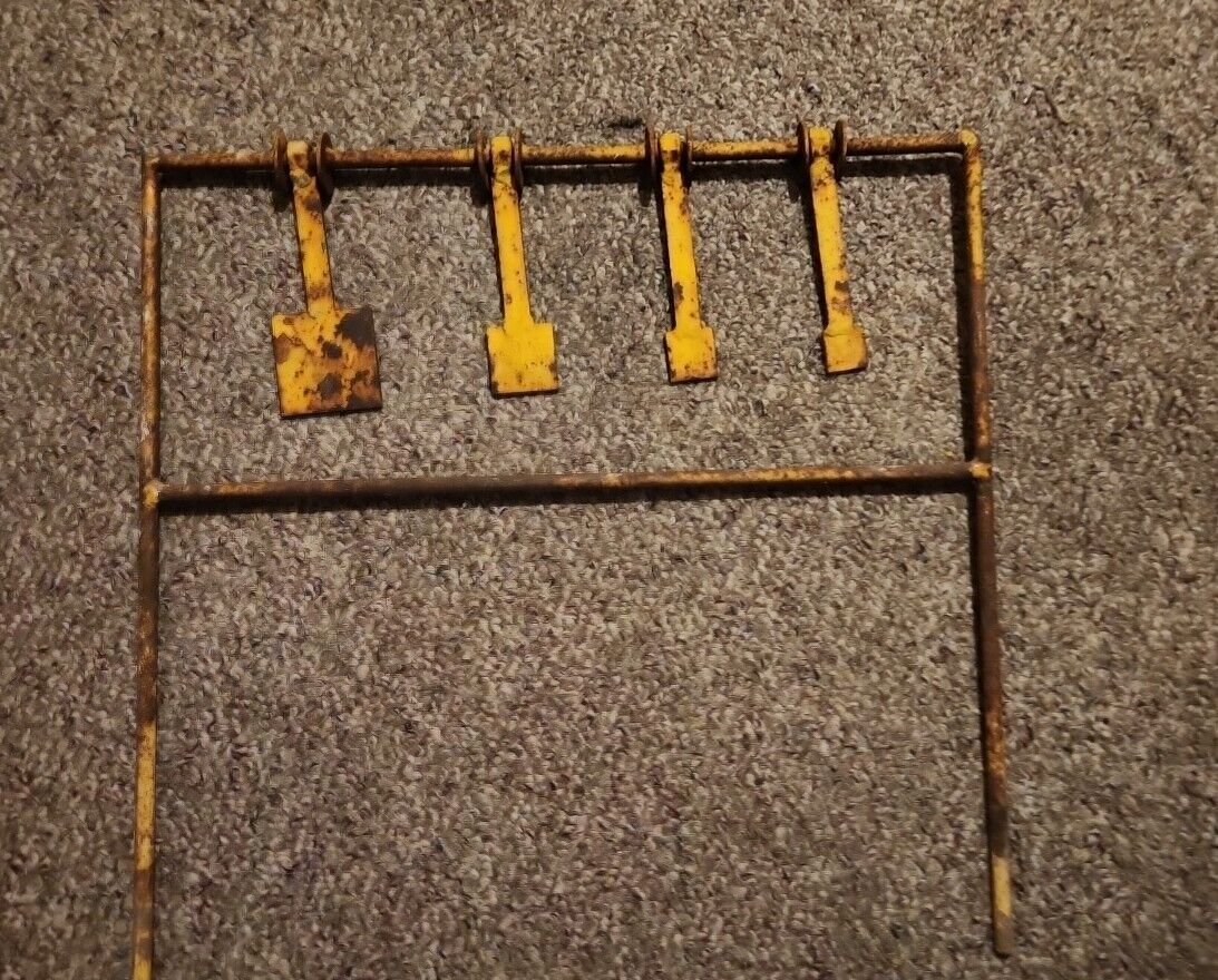 Antique Iron Shooting Target Spinning Gong Gallery Fold Open Press Into Ground
