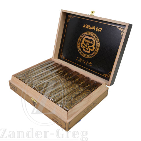 The Asylum 867 Midnight Oil presents itself as a flavor-infused cigar employing the steeping method to imbue its distinct flavors. This marks the initial release by Asylum of what they refer to as “aromatic flavors via exotic tobaccos.” This Honduran puro showcases an enticing maduro wrapper. Following the cigar rolling process, flavors are introduced by immersing them in a flavored liquid or employing methods resembling aroma therapy. In this procedure, the cigars are placed in a sealed environment, allowing them to absorb the enticing flavors. Handcrafted in Honduras at the CLE Cigar Company factory, the Asylum 867 Midnight Oil, previously recognized as the Deadwood Tobacco Co. Chasing the Dragon Midnight Oil, retains the same blend and offers the identical delightful flavor profile as its former moniker.