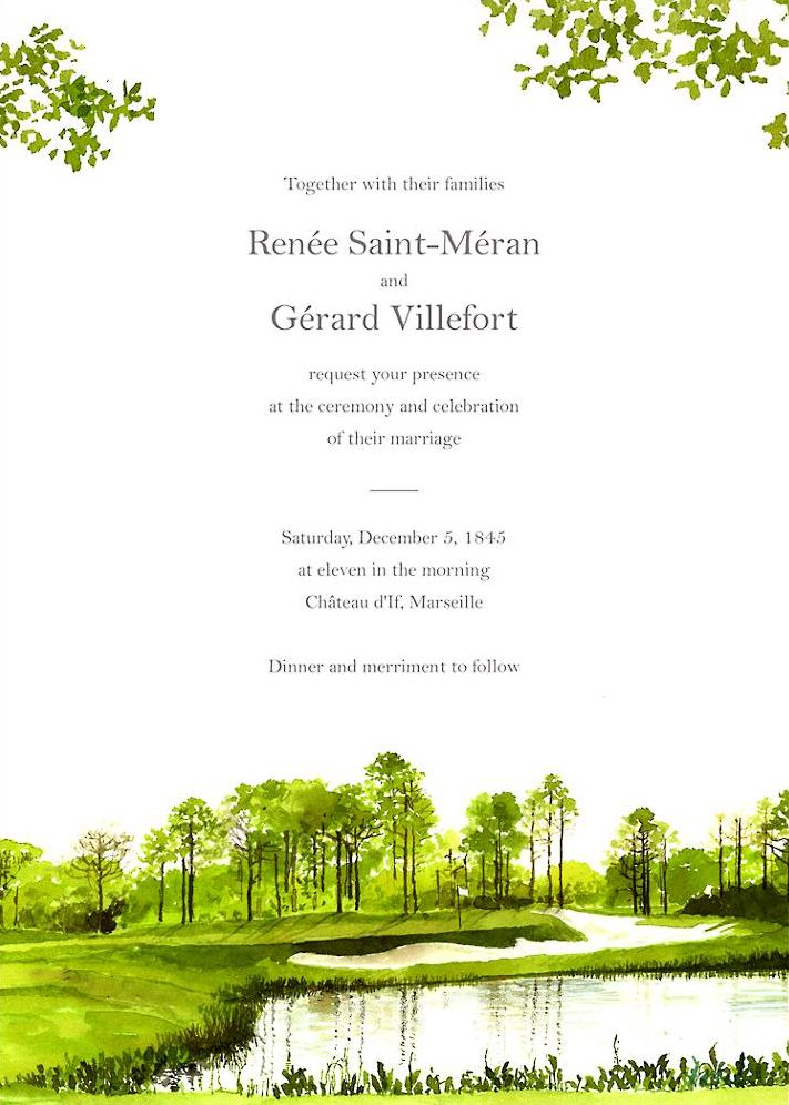 The lovely Augusta Wedding Invitation features artwork of the beautiful Augusta National Golf Course. From the designers at Felix Doolittle for Paperless Post. Printed on Mohawk superfine white 130 lb. card stock that is soft to the touch and matches our superfine white envelopes. Paper is FSC certified and made using wind power. Corresponding Paperless Post digital design also available.