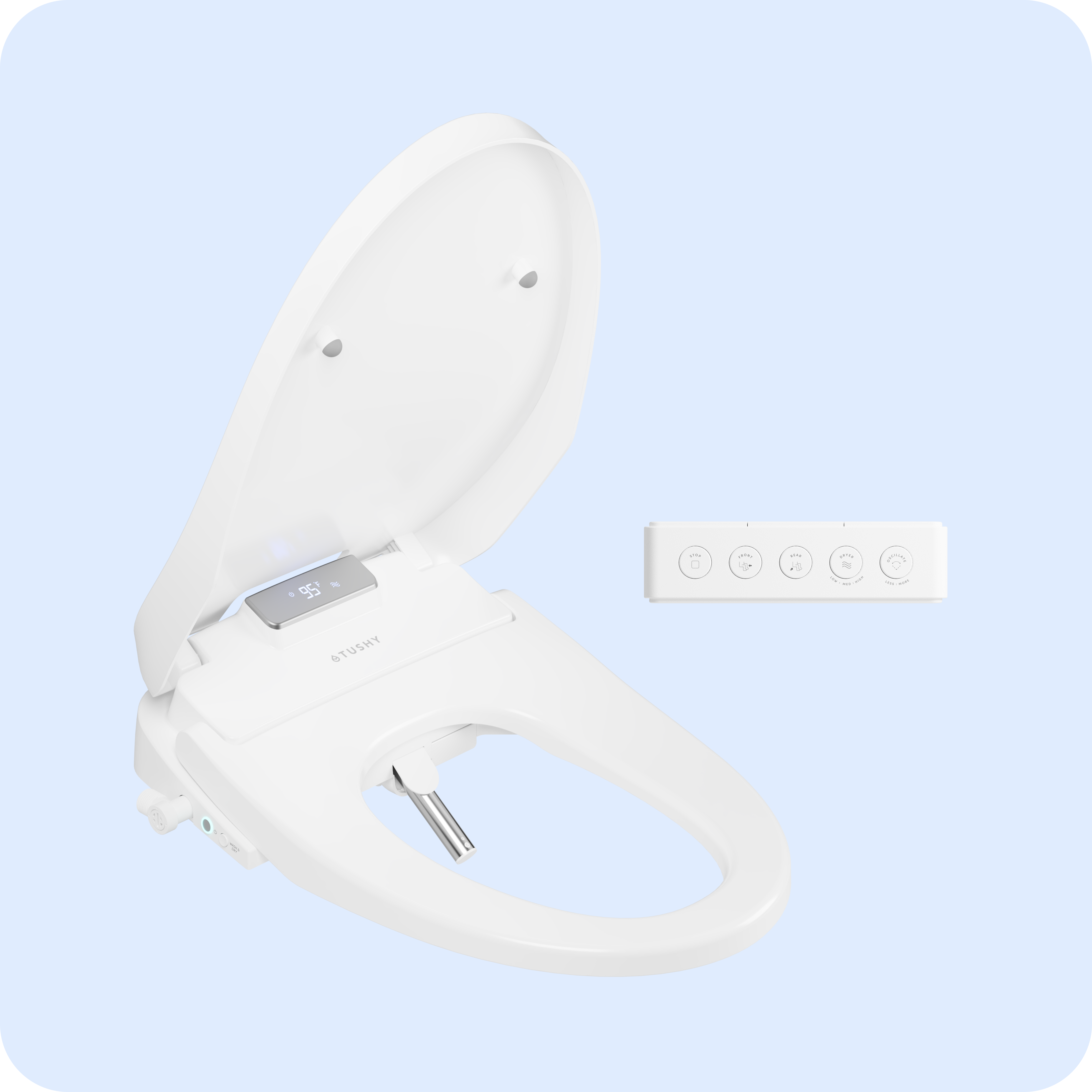 Aura by TUSHY is your gateway to the future of clean. Our luxury heated bidet toilet seat features warm water, a dryer, UV sterilization, digital screen, and auto open/close lid and seat.