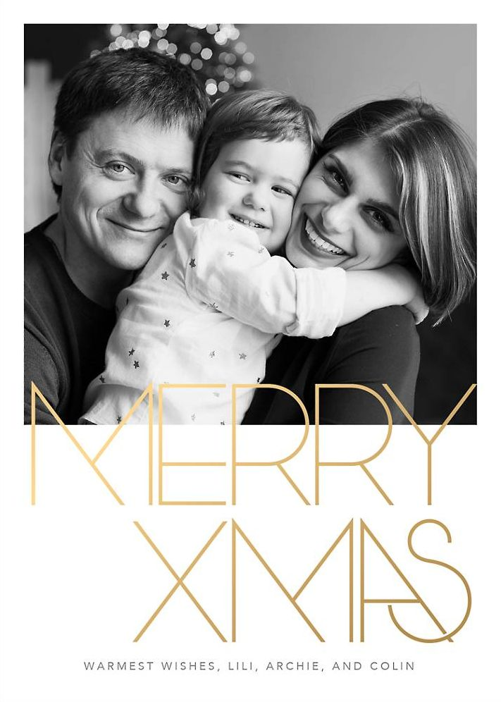 Customize this year’s holiday correspondence with family photos accompanied by the perfect foil details.The elegant foil finish on this holiday photo card by Paperless Post allows you to add a personalized touch!