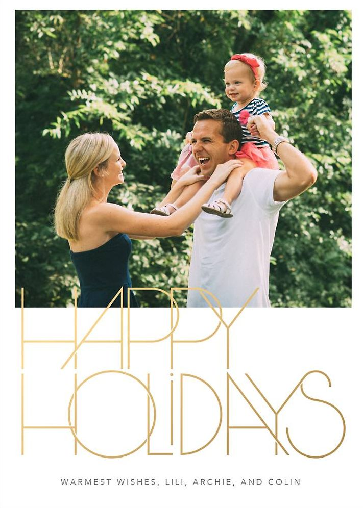 Customize this year’s holiday correspondence with family photos with the perfect gold foil details. This holiday photo card by Paperless Post allows you to add a personalized touch!