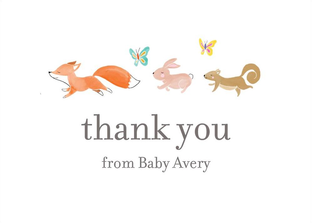 Sweet woodland critters adorn the front of this adorable stationery, perfect for all your baby thank yous and correspondence. Designed by Paper Source.