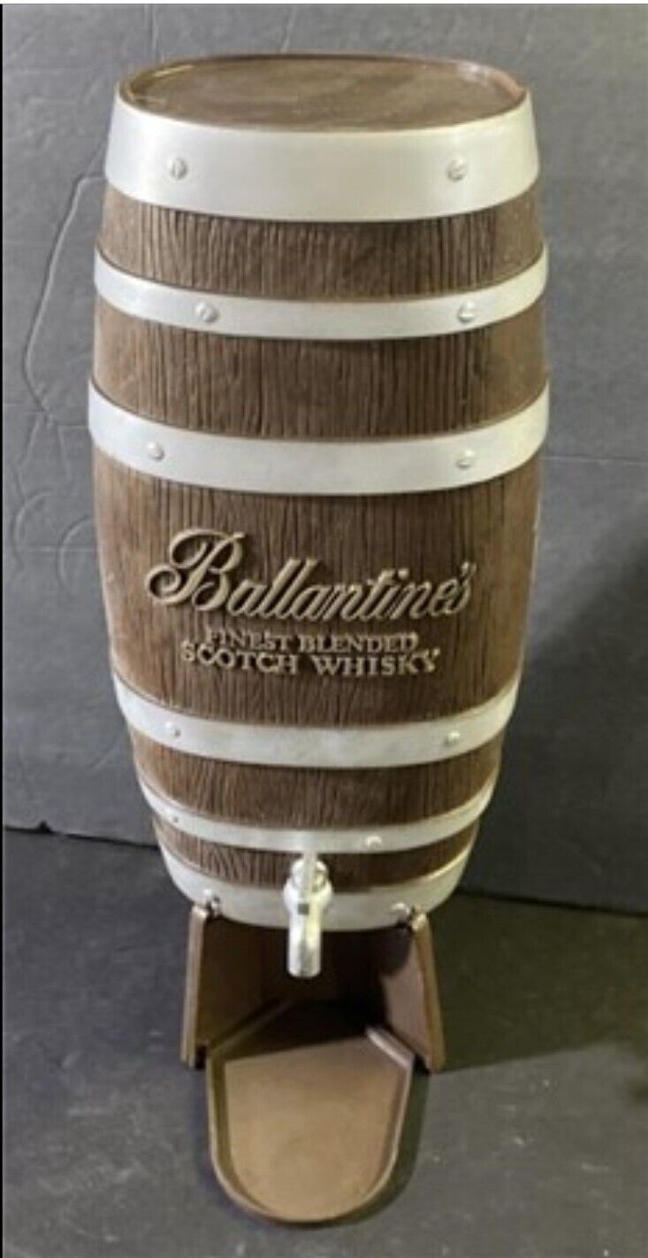 This is a vintage Ballantine’s scotch whiskey barrel advertising sign. The brown color and distillery theme make it a great addition to any collection. The sign is a reliable representation of the quality and taste of Ballantine’s scotch. It is a unique piece of advertising history that is sure to impress any scotch enthusiast. The sign was made in the United States and has not been modified.