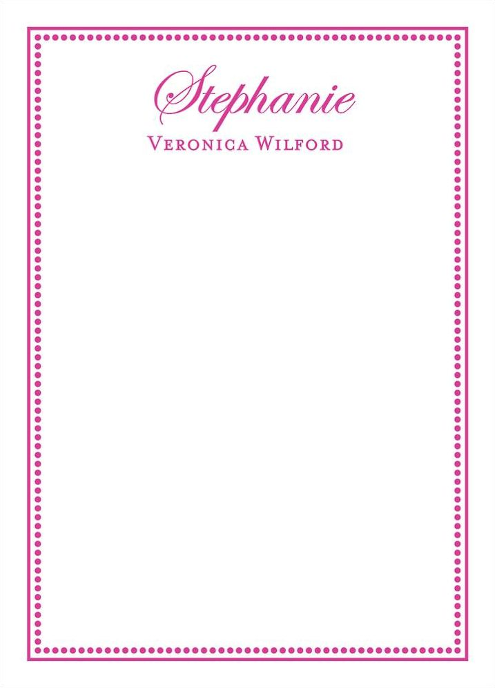 A line and beaded border frames your name on this beautiful stylish personalized stationery. Printed on superfine white paper, which has a smooth finish and is soft to the touch. 130# cover weight paper with 30% post consumer recycled content.