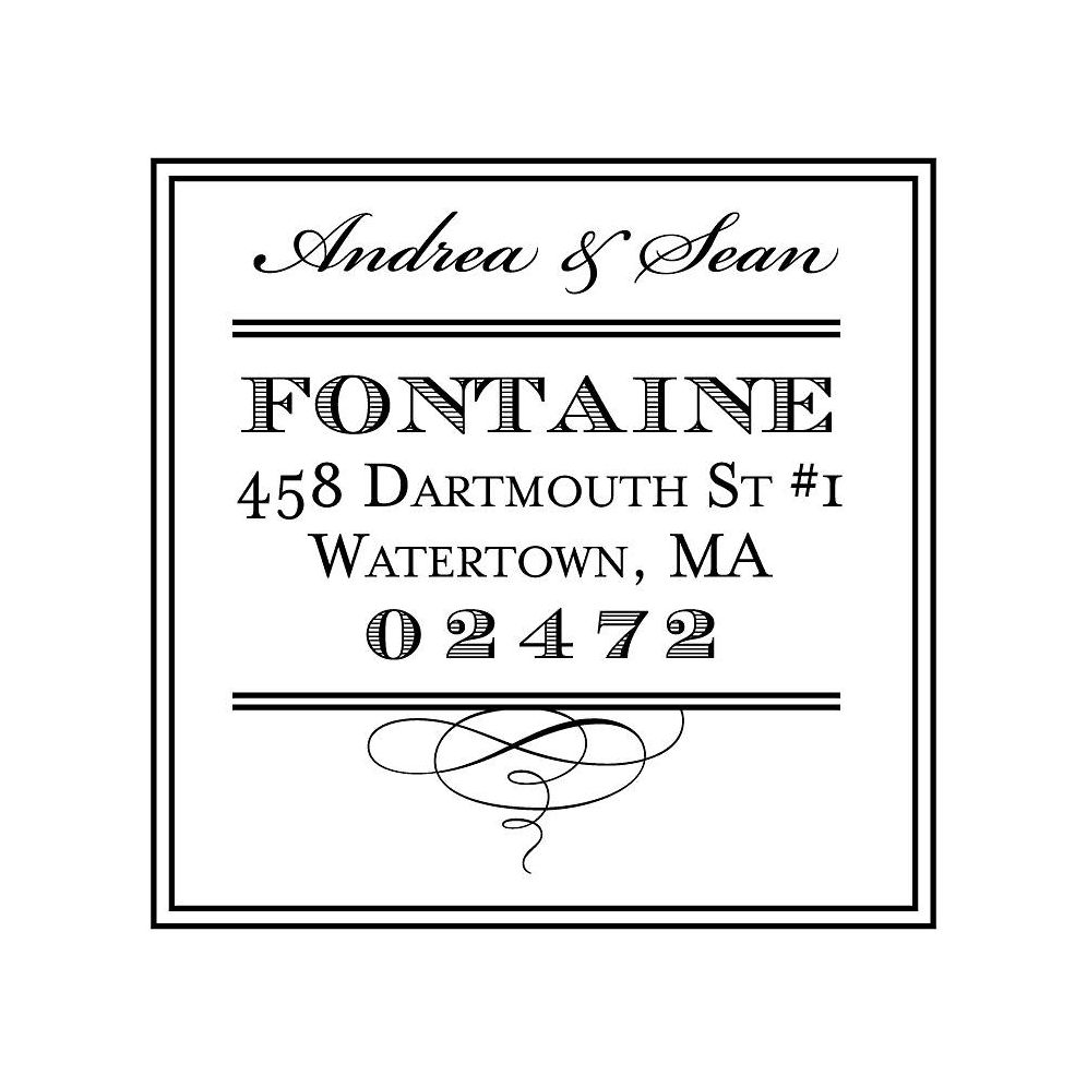 Self-inking stamps with Paper Source custom designs are an easy way to add your return address to envelopes. Just press down on the stamp machine and it creates a clean, crisp impression of your custom text. From Three Designing Women.