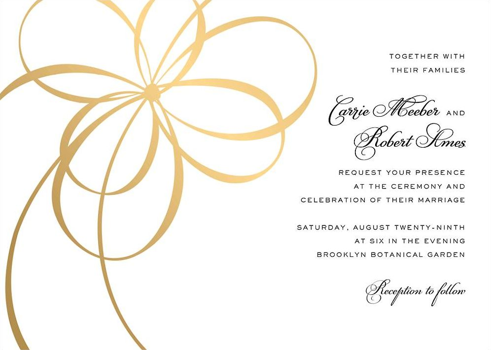 Elegant foil accents are the perfect detail to glamorize your big day. Start your wedding theme planning with these elegant foil wedding invitations. With a font that adds character and a feminine flair, these invitations are perfect for a range of wedding themes. Invitation design by kate spade new york for Paperless Post. Printed on superfine white paper, which has a smooth finish and is soft to the touch. 130# cover weight paper with 30% post consumer recycled content.