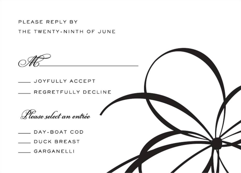 Elegant ornamentation details are the perfect way to glamorize your big day. Start your wedding theme planning with these elegant wedding RSVPs. With a font that adds character and a feminine flair, these response cards are perfect for a range of wedding themes. Design by kate spade new york for Paperless Post. Printed on Mohawk superfine white 130 lb. card stock that is soft to the touch and matches our superfine white envelopes. Paper is FSC certified and made using wind power.