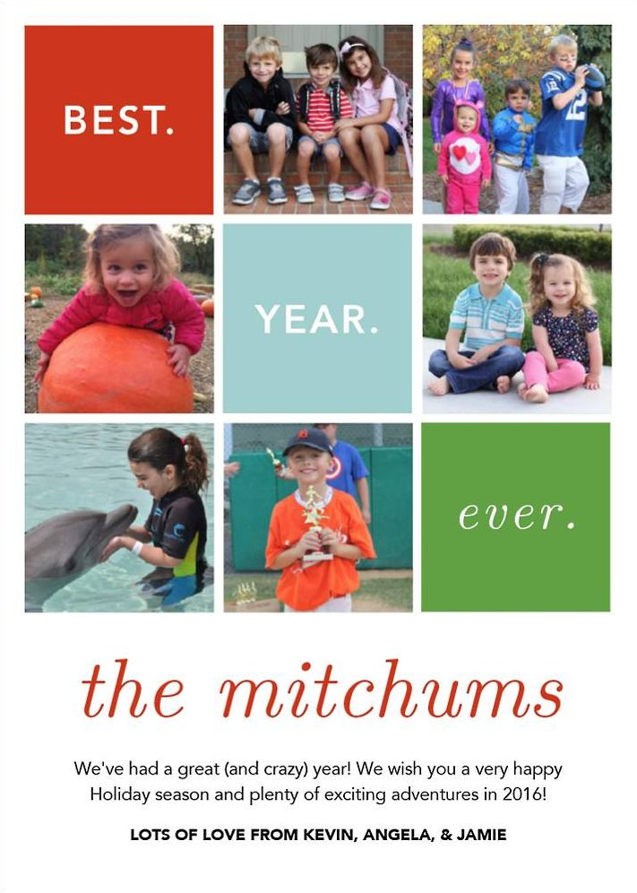 Recap a wonderful year with this holiday card featuring your favorite moments captured in photos. Printed on Mohawk ultra white 120 lb. card stock that is soft to the touch and matches our superfine white envelopes. Paper is FSC certified and made using wind power.