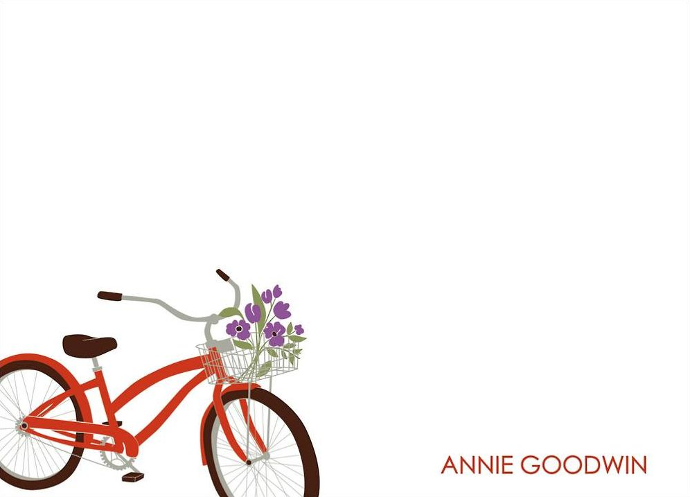Full of charm, our classic bike with flower filled basket is such fun! Printed on superfine white paper, which has a smooth finish and is soft to the touch. 130# cover weight paper with 30% post consumer recycled content.