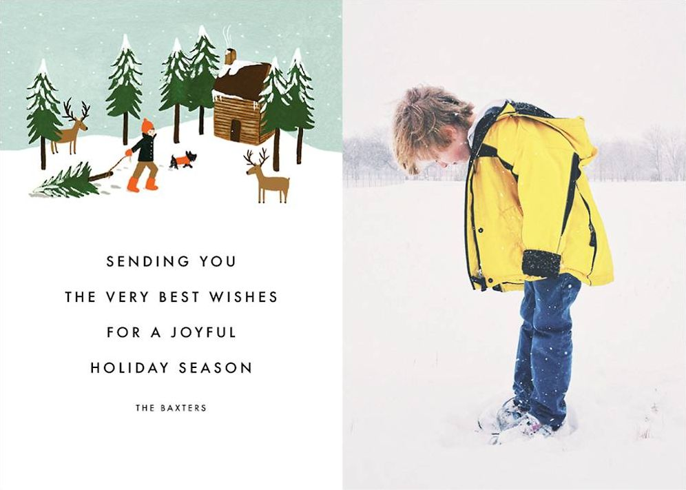 Get everyone you know in the holiday spirit when you send them this personalized holiday photo card by Rifle Paper Co. for Paperless Post, featuring artwork of a Christmas night replete with trees and reindeer. Add a personal family photo and you’re all set to bring smiles to your loved one’s faces!