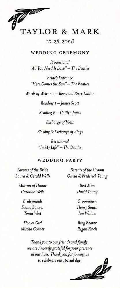 Pair these programs with your Black and White Floral suite, or mix and match to your style from any suite in our wedding collection.