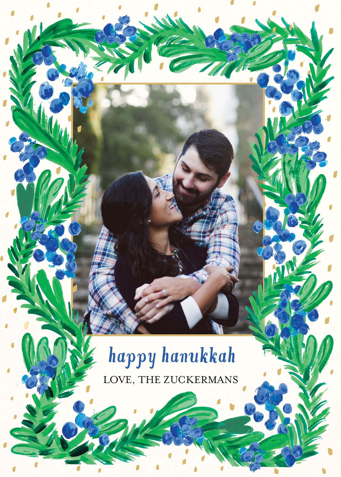Lush greenery and vibrant blue berries frame your memories in this design from Mr. Boddington’s Studio for Paperless Post. Printed on Mohawk ultra white, 120 lb. card stock that is soft to the touch and matches our superfine white envelopes. Paper is FSC certified and made using wind power.