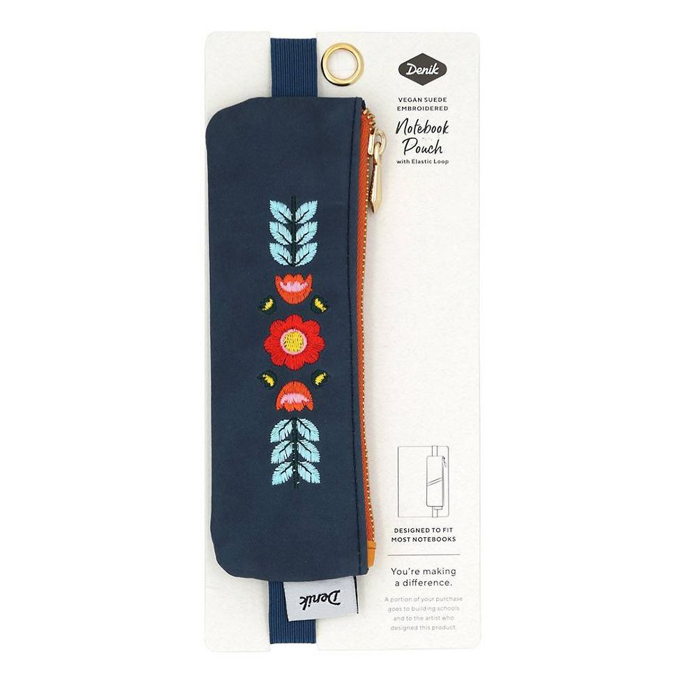 The vegan suede Evelynn notebook pouch fits snugly around most notebooks and is perfect for carrying your favorite writing accessories up to 6″ in length. Designed by Denik.