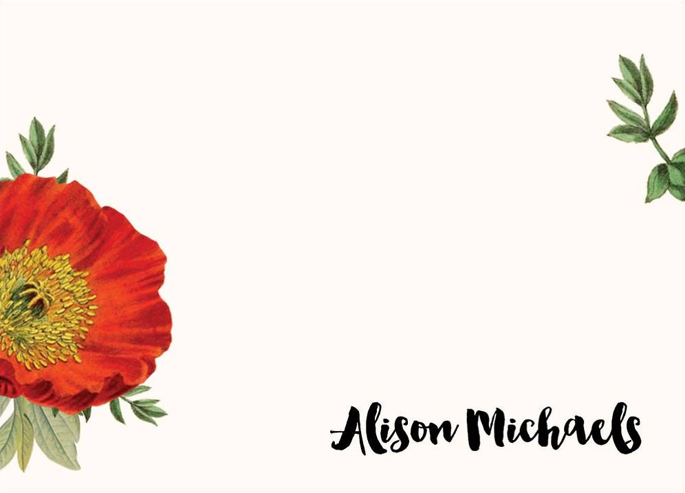A big, bold flower frames this personalized stationery creating a beautiful floral design of color and style! Printed on superfine white paper, which has a smooth finish and is soft to the touch. 130# cover weight paper with 30% post consumer recycled content.