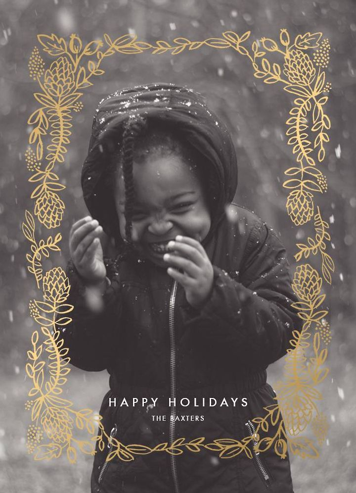 This Rifle Paper Co. for Paperless Post foil design frames beautiful around a custom family photo and makes for a great holiday photo card! Foil options include rose gold, gold and silver.