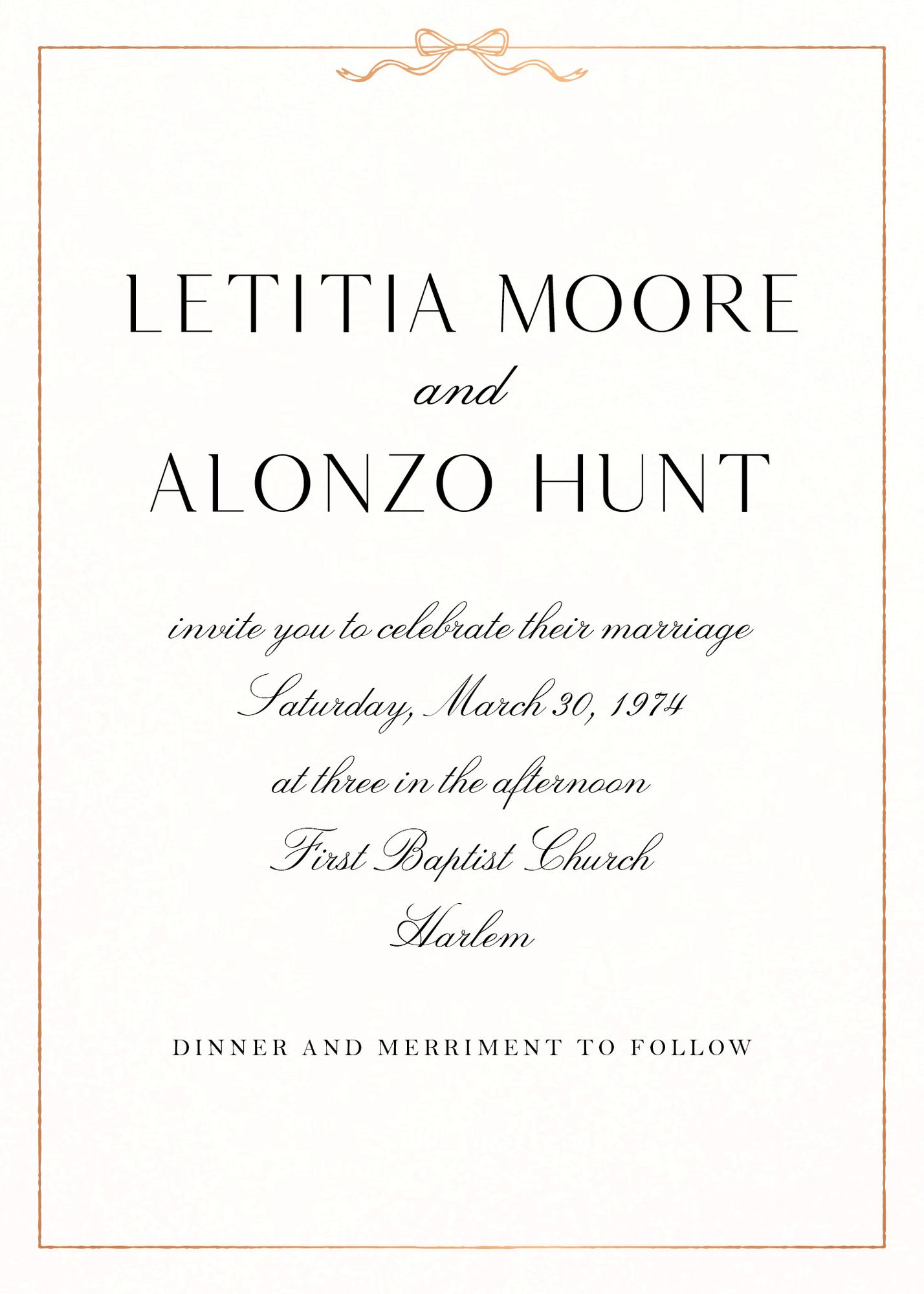 A delicate bow frames this charming design from Paperless Post, adding a graceful aesthetic that sets the stage for an unforgettable celebration. Printed on Mohawk superfine white 130 lb. card stock that is soft to the touch and matches our superfine white envelopes. This paper is FSC certified, with 30% post-consumer recycled content, and made using wind power. Running low on time? You can send this design digitally with our partners at Paperless Post.