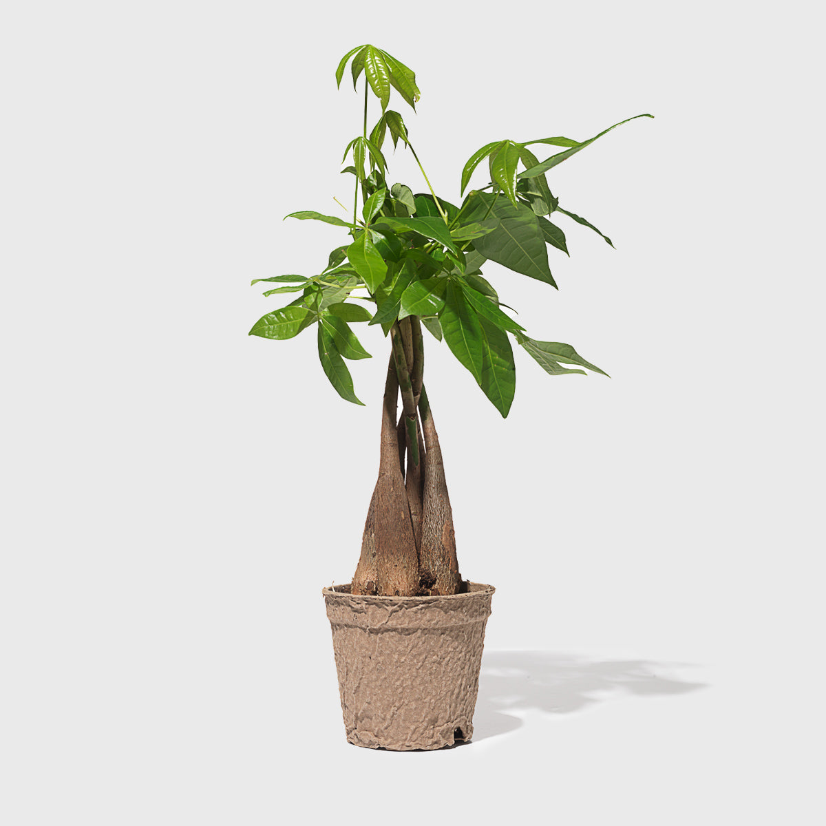 The Braided Money Tree gets its name from its unique braided trunk and is known for its interesting shape and bright green leaves. Although this plant arrives petite, it can grow as tall as 10 ft. if well taken care of. Native to Central and South America, the Braided Money Tree loves bright indirect light and watering once the top 1″ to 2″ of soil is completely dry. Your plant comes in a biodegradable pot! While you can always repot your plant entirely, you can simply place the entire plant, with the pulp pot, into a decorative pot of your choosing.
