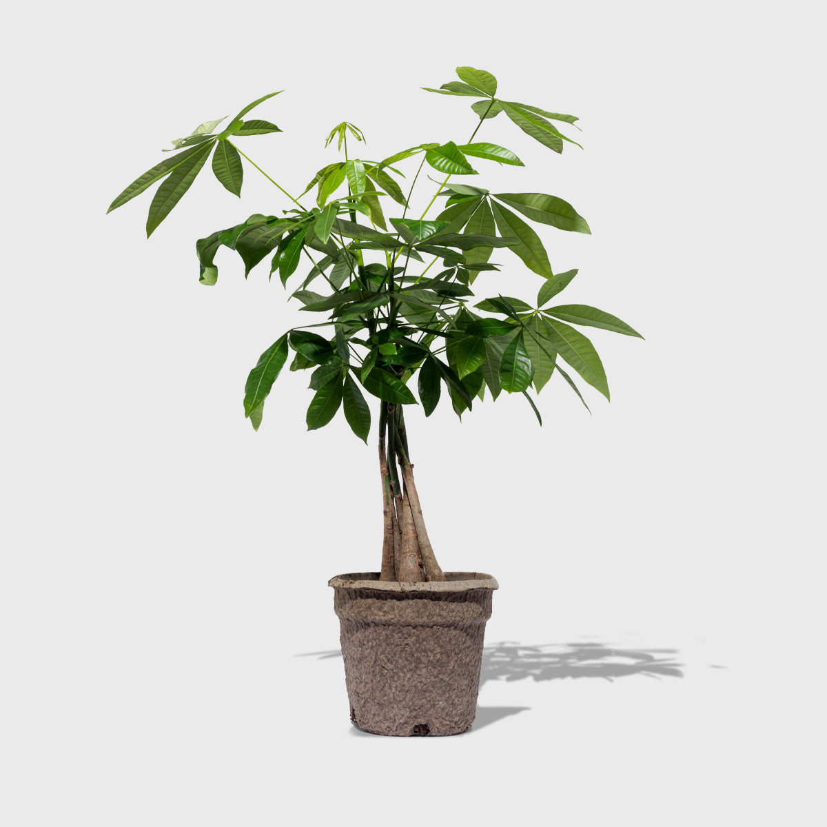 The Braided Money Tree gets its name from its unique braided trunk and is known for its interesting shape and bright green leaves. Although this plant arrives petite, it can grow as tall as 10 ft. if well taken care of. Native to Central and South America, the Braided Money Tree loves bright indirect light and watering once the top 1″ to 2″ of soil is completely dry. Your plant comes in a biodegradable pot! While you can always repot your plant entirely, you can simply place the entire plant, with the pulp pot, into a decorative pot of your choosing.