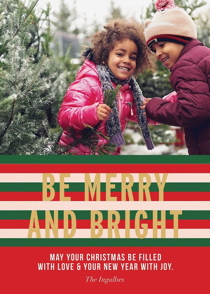 Let those you love know that you’re thinking of them with this personalized holiday photo card from kate spade new york by Paperless Post. This card reads “Be Merry and Bright” and can be further customized with a message from you and your family. Printed on Mohawk ultra white 120 lb. card stock that is soft to the touch and matches our superfine white envelopes. Paper is FSC certified and made using wind power.