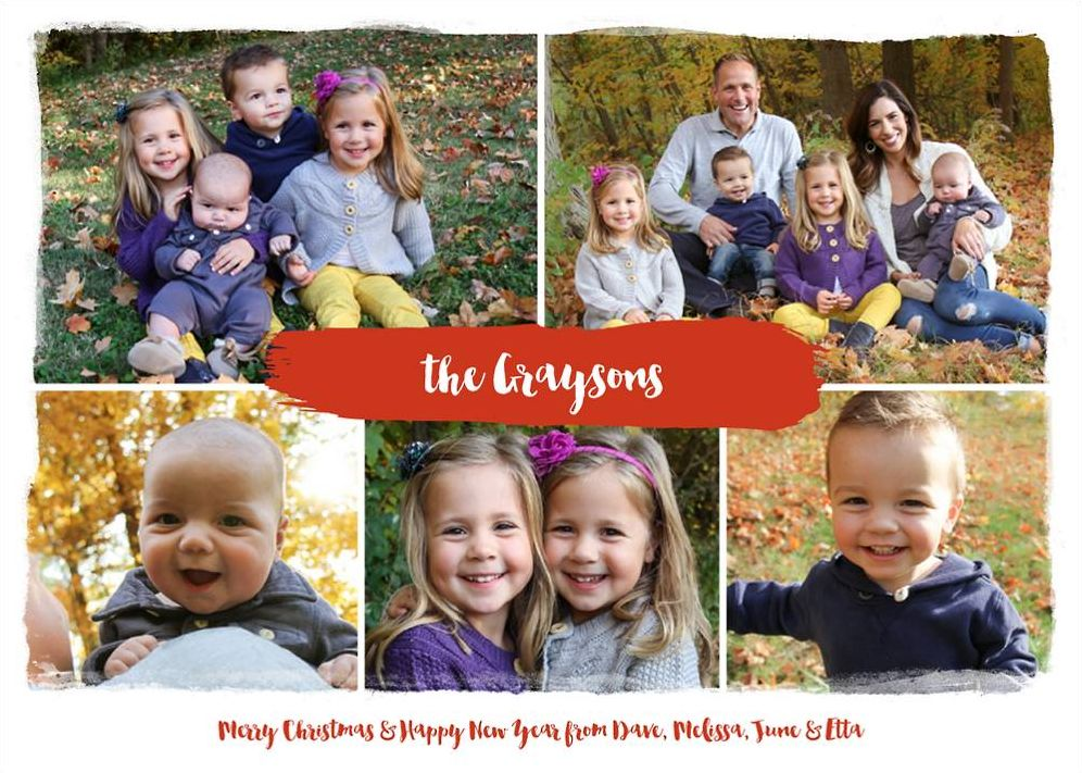 This festive holiday design features a brushstroke red banner with your family name. The distressed photo edges add an artistic touch. Printed on Mohawk ultra white 120 lb. card stock that is soft to the touch and matches our superfine white envelopes. Paper is FSC certified and made using wind power.