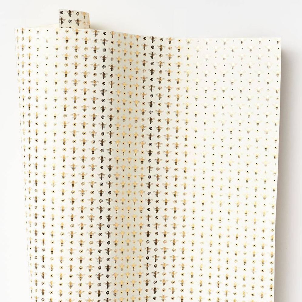 A gold foil bee print makes this cream Italian fine paper absolutely adorable! Besides the normal use for wrapping boxes and gifts, it is great for bookbindery, creative and artistic hobbies, scrapbooking, origami, DIY, and décor.