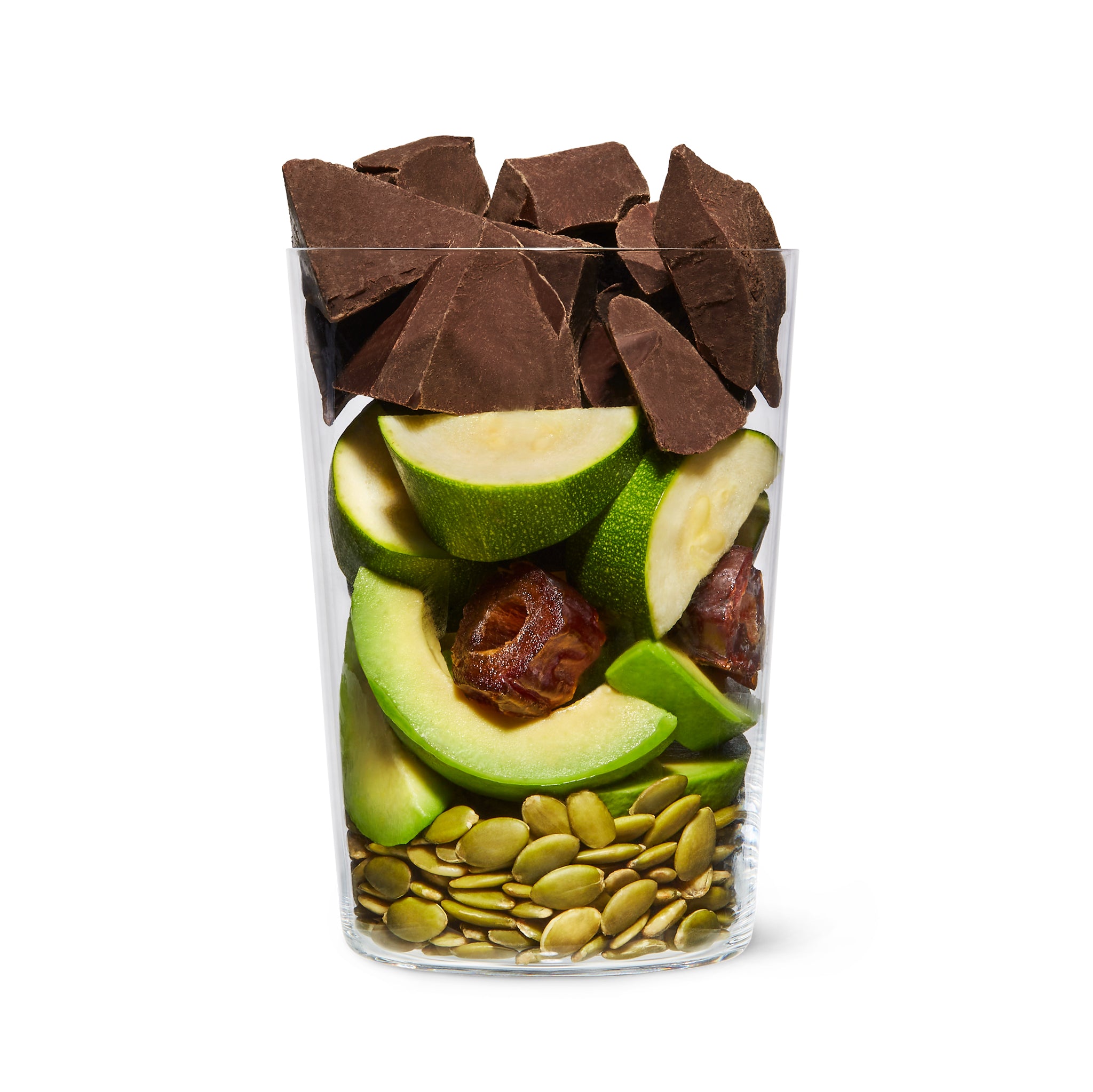 We can’t think of a better way to get a chocolate fix. Creamy avocado, chocolatey cacao, nutty pumpkin seeds, and tender zucchini (yes, zucchini) combine to create a smoothie with flavor and texture thisclose to chocolate pudding. It also happens to be rich in fiber. Let’s see pudding do that.