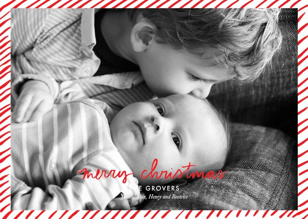 This candy striped bordered holiday photo card by Linda and Harriett for Paperless Post is perfect to share your family photos in with your friends.
