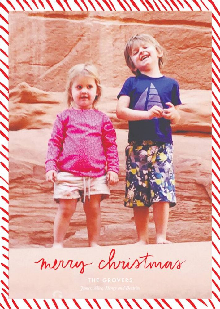 This candy striped bordered holiday photo card by Linda and Harriett for Paperless Post is perfect to share your family photos in with your friends.