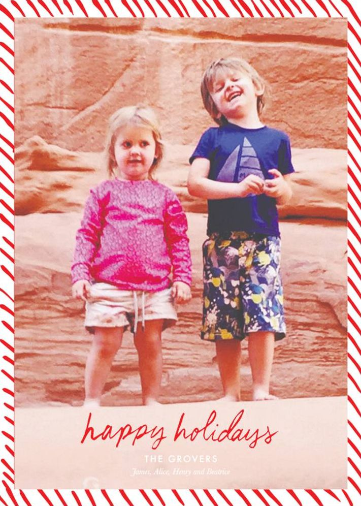 This candy striped bordered holiday photo by Linda and Harriett for Paperless Post card is perfect to share your family photos in with your friends.