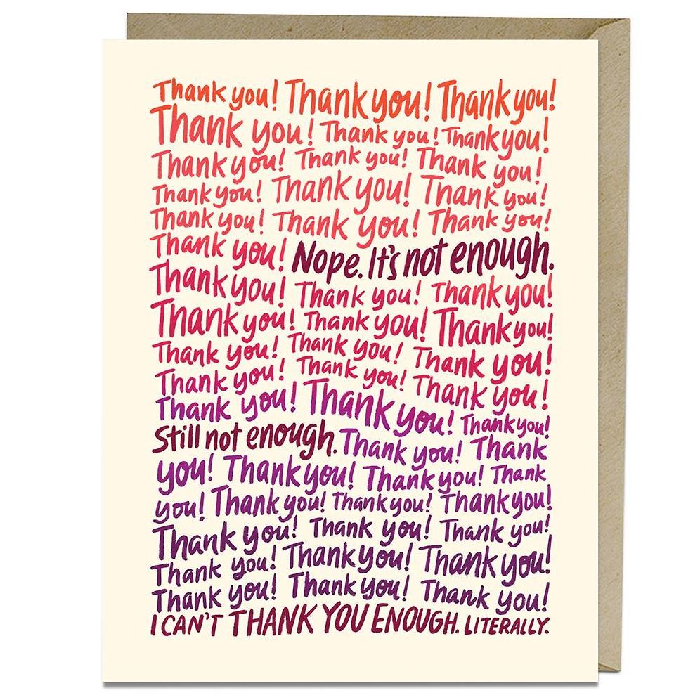 When a standard thank-you note doesn’t feel like quite enough, reach for this abundantly thankful thank-you card! It’ll make the infinite extent of your gratitude clear, even when it stretches all the way to like Pluto and back. Speaking of gratitude, aren’t you so lucky to have someone you feel THAT THANKFUL for in your life!? Like, wow. Wow! WOW.