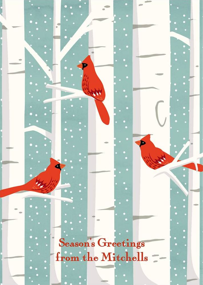 Cardinals in Birch Trees Holiday Card
