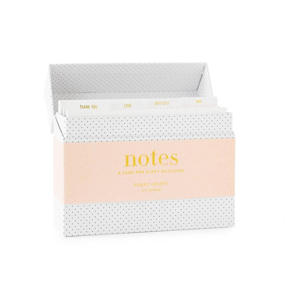 This boxed set has cards for every occasion including thank you, love, birthday, etc.! Comes with different designs on each card. Folded cards Paired with matching envelopes By Sugar Paper