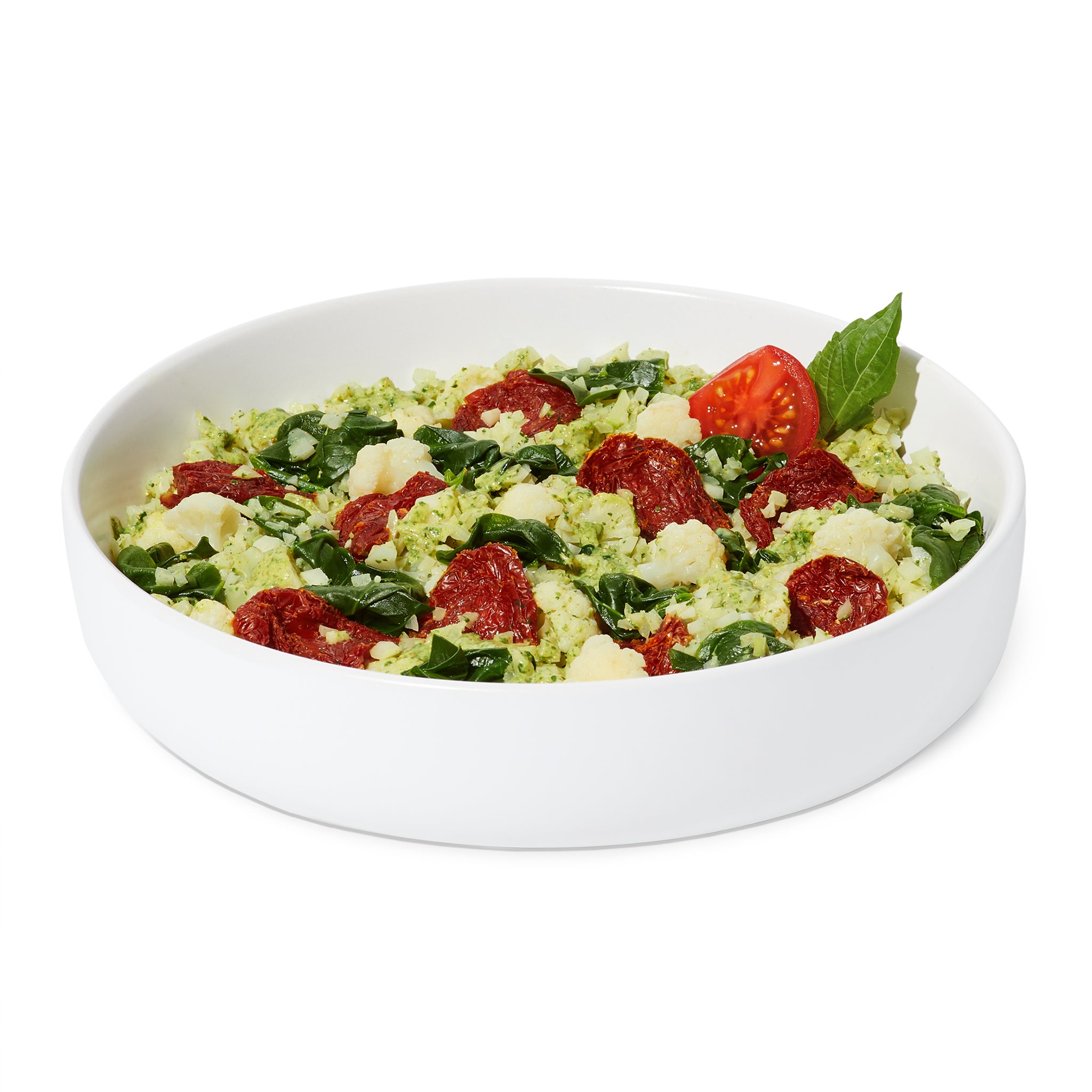 Risotto, but make it effortless. We made you a pesto with basil, spinach, cashews, and olive oil, plus a hit of umami-rich nutritional yeast. Folded into creamy cauliflower rice, it’s *chef’s kiss.* Top it with pan-seared shrimp, white beans, or chicken for next-level nonna flavor.