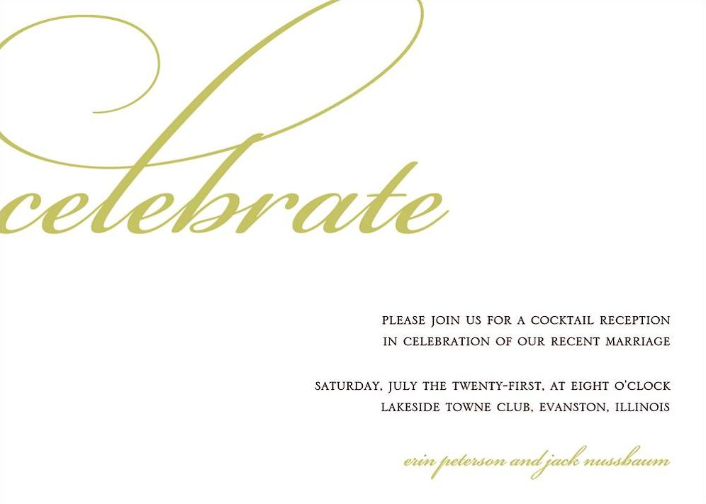 A beautiful script font showcases a single breathtaking word on this elegant invitation for all types of occasions. Printed on white 130 lb cover paper with a tactile vellum finish. 100% post-consumer waste, FSC certified.